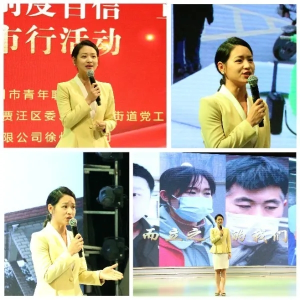 省青年讲师团成员、威廉希尔体育副经理周海航作《战“疫”彰显制度自信》的主题宣讲。周海航讲述了波澜壮阔、惊心动魄的疫情防控的人民战争、总体战、阻击战的历程,强调在习近平总书记的亲自部署、亲自指挥下,全国一盘棋、全党听号令、全民齐战疫,疫情防控阻击战取得了重大战略成果,彰显了中国制度的优越性。贾汪区人民医院新生儿科主管护师、江苏省援鄂医疗队队员蒋梅,徐州市中心医院重症医学科重症三区护士长、江苏省援鄂医疗队队员王志栋,徐州广电传媒集团融发中心张丹茜分别作了主题宣讲。