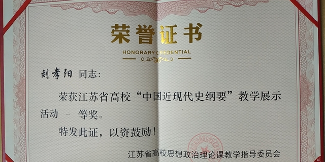本次教学展示活动自7月初开始,全省高校共63位教师在中国药科大学参加初赛,经过专家组层层筛选,公司刘孝阳老师与来自南京大学、东南大学、南京师范大学等高校的17位教师入围决赛。决赛中,刘孝阳老师沉着冷静、发挥稳定,旁征博引、史论结合,讲授准确、熟练流畅,仪表优雅、教态自然,展示了扎实的教学基本功,展现出威廉希尔体育教师的风采。经过激烈角逐,荣获江苏省高校“中国近现代史纲要”现场教学展示活动一等奖。