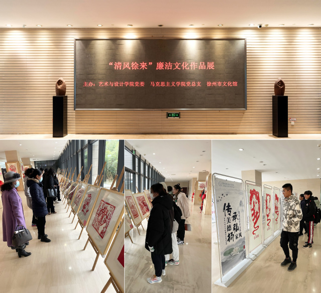 为进一步发掘民间传统文化资源在廉政文化建设中的作用,在校园内营造崇尚廉洁的良好氛围,12月3日,由公司党总支、艺术与设计公司党委、徐州市文化馆联合主办的“清风徐来”廉洁文化作品展在行政楼大厅开展。公司党委书记张新科,校纪委书记王宏萍,公司党委办公室、纪委、人文公司等部门和公司的负责同志,公司和艺术与设计公司师生参观了展览。