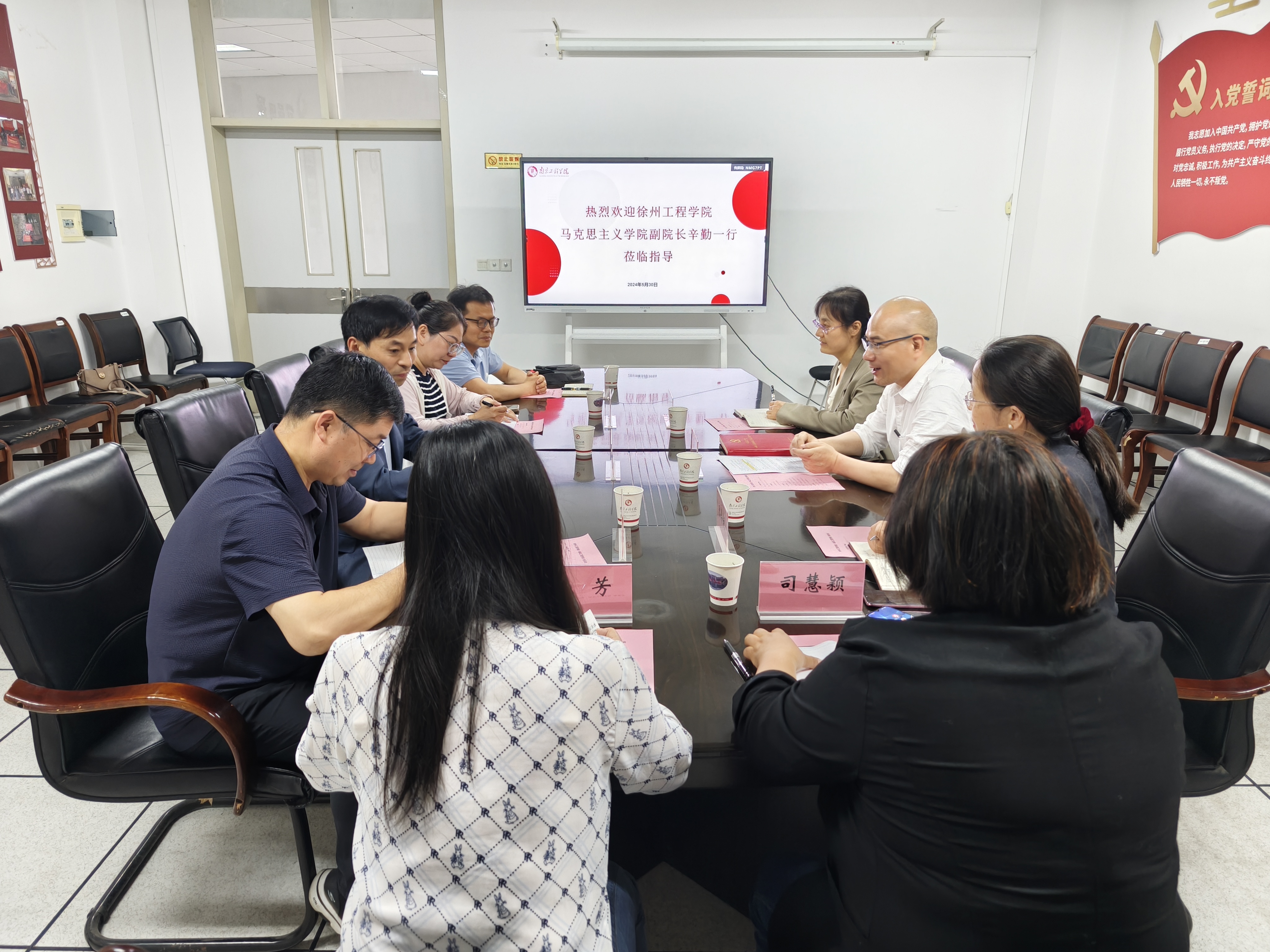 刘朝晖向辛勤一行的到访表示热烈欢迎。刘朝晖介绍了南工程马院发展历程、课程建设、思政课教学改革、团队队伍建设、人才培养、社会服务等方面的做法和经验。宋伶俐重点介绍了迎接教育部本科公司产品审核评估的注意事项。辛勤对南工程马院的热情接待表示感谢,介绍了徐工院马院课程体系建设、团队队伍建设、思政课程教学改革的特色亮点等相关情况,希望今后两院能够加强交流、互相促进。随后,双方围绕青年教师培养、思政课教学改革和教育部公司产品审核评估等工作展开深入探讨。
