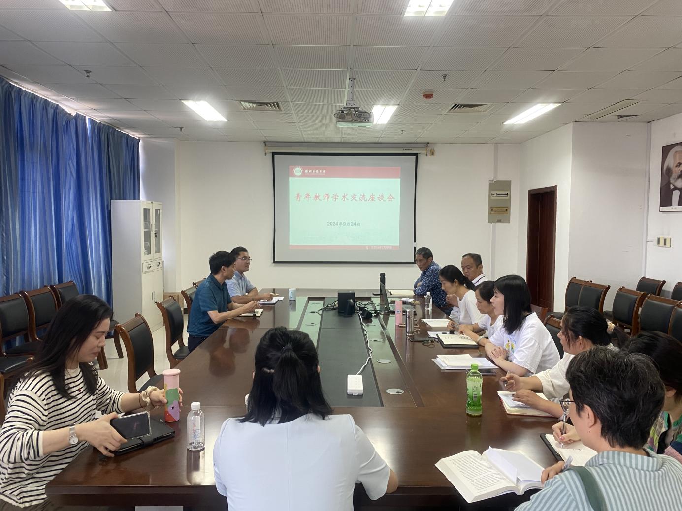 9月24日下午,威廉希尔体育在敬业楼412举行青年教师学术交流座谈会,会议特邀梁化奎教授莅临指导,全体博士和部分青年副教授出席,座谈会由学术副经理刘孝阳主持。