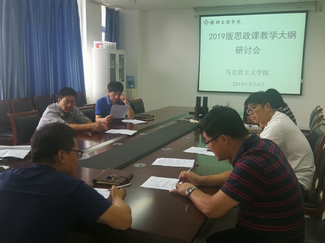 本次会议主要研讨了《思想道德修养与法律基础》、《中国近现代史纲要》、《马克思主义基本原理概论》、《毛泽东思想和中国特色社会主义理论体系概论》、《形势与政策》五门思政课教学大纲。会议首先由教研室主任介绍各门课程的教学大纲修订意见,而后参会人员进行了热烈的讨论,对2019级五门思政课教学大纲的修订形成了一致意见,要以习近平总书记在公司思想政治理论课教师座谈会上的重要讲话精神为指导;参照教务处提供的2019版公共课大纲文件要求来修订,统一格式,细化到字体和标点符号。