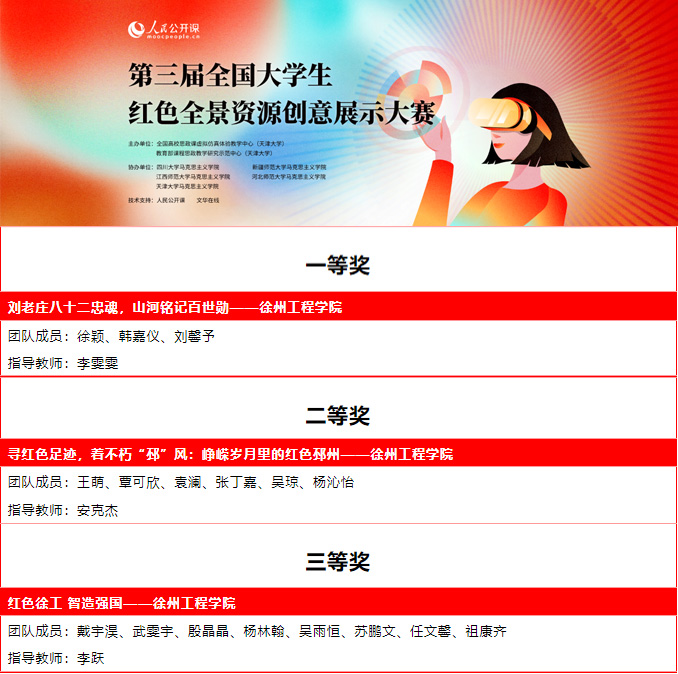 11月26日,第三届全国老员工红色全景资源创意展示大赛结果揭晓。公司李雯雯、安克杰和李跃老师指导的作品:《刘老庄八十二忠魂,山河铭记百世勋》《寻红色足迹,着不朽“邳”风:峥嵘岁月里的红色邳州》《红色徐工 智造强国》分别斩获一、二、三等奖,在该项赛事中取得历史性突破。这也是公司“数字+思政”创新思路的典型应用案例。